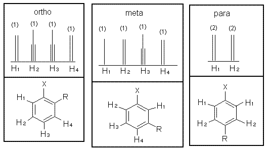 The order of these peaks is dependent on the nature of the two substituents. For example, the three NMR spectra of chloronitrobenzene isomers are below: