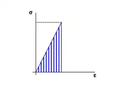 Figure 2: Example of a homogeneous elastic stress-strain curve. The area underneath the curve is highlighted to show the total elastic energy.