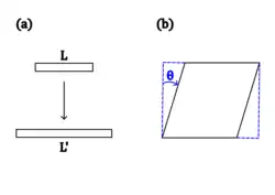 Figure 1: a) Linear elongation where b) Shear deformation where .