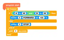 The AND activity Using the A & B inputs write a program to light the motor LED only when A AND B is hi.