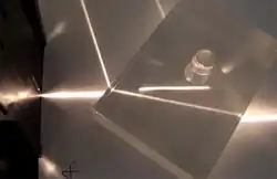 Light acts as both a wave and a ray of particles. When observing the effects of light on large object such as cubes of glass, mirrors and lenses light can be observed to act like a ray of tiny little particles that can be bounced, directed or slowed.