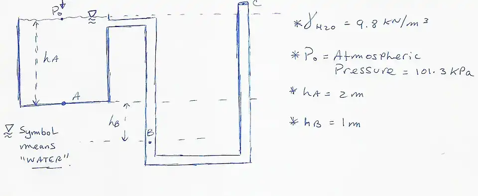 Consider the tank and tube setup to the right in Figure 2. Unless we state otherwise, let us assume that every pressure is a gauge pressure. Find the following: