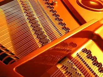 The piano is a versatile and widely used musical instrument known for its range, expressive capability, and adaptability across various musical genres. It is a chordophonic instrument and one that belongs to the percussion and string instrument families. It produces sound by pressing keys on the keyboard that activate felt-covered hammers into striking strings inside the instrument. It typically has 88 keys (52 white keys and 36 black keys).