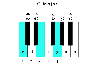 - start with the c major chord in the natural or fundamental state (c, e, g)