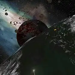 Artist reconstruction of the Hadean Eon of Earth’s early history, when the Earth was mostly molten.