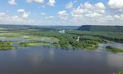 Rivers are held along the banks by natural levees. A natural levee is a low ridge of sediment and/or organic materials, such as wood that is deposited alongside a river by water during their peak seasonal flow. This deposit of sediment forms a low ridge that acts to retain the river channel within the main channel system during seasonal runoff and at annual high discharge levels. However, during infrequent flooding events these natural levees can be breached, resulting in floodwaters covering the larger flood plains beyond them. Flood plains are the low topographic lands adjacent to rivers that experience infrequent flooding during periods of extremely high discharge. Because of their close proximity to water, flood plains are areas that are desirable for the construction of homes and buildings near irrigated lands. Unfortunately, they are where flooding can cause considerable damage, when rivers overflow their natural protective levees.