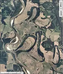 Over time the river will continue to cut into one side of the bank on the high velocity side, while the other side of the river will grow with the deposition of sand and other sediments, on the low velocity side. The river will alternate downstream with the cut bank and point bar on differing sides of the river. Eventually when the cut bank continues to be eroded the river will increase the bend, until contacting another cut bank along the course of the river. This bypass forms an oxbox lake, an isolated section of river that has been bypassed by the main river channel.