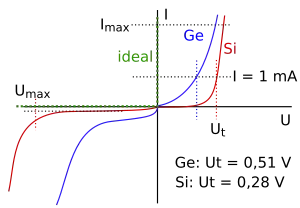 Conducting voltage of diode represents diode biasing voltage to conduct current . Conducting voltage of diode has a symbol Silicon (Si) diode is 0.7 V Germanium (Ge) diode is 0.3 V
