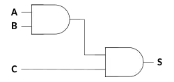 This can be done by ANDing the first two conditions and ANDing the third. Now, AND these together, and you get a high only when all three conditions are satisfied.
