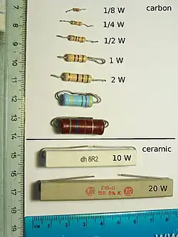 Besides resistance, the resistors available in the market also vary according to the power they can dissipate. In general terms, the greater the power dissipation, the larger the resistor. Thus size can be taken as a rough measure of power dissipation.