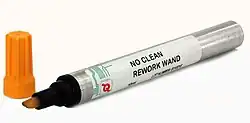 Flux is also available in "pen" applicators. This allows it to be applied, before soldering with rosin core solder, to surfaces that need to be very well fluxed such as SMT pads and unfluxed solder braid in order to be reliable.