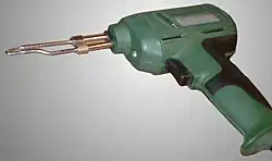A soldering gun, running on AC mains power, has the advantage of quickly heating up and cooling down, and can deliver significant heat to a joint. They are excellent for general electrical work, but not particularly useful for fine electronics work, as they are bulky, inhibiting accurate positioning of the tip, and supporting the weight of the transformer will cause rapid operator fatigue. Tip selection for these tools is limited to a few styles, generally blunt, for larger joints. Moreover, the tip generates an intense electromagnetic field when operating, which can damage sensitive semiconductors.