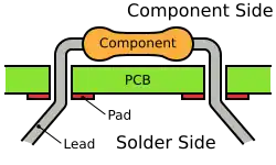 When the PCB has copper tracks on only one side of the circuit board, the two sides of the board are usually called "solder side" and "component side".