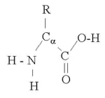 An α-amino acid. The CαH atom is omitted in the diagram.