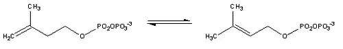 3-isopentenyl pyrophosphate is isomerized to dimethylallyl pyrophosphate.