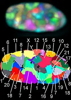 - ↑ Bolzer et al., (2005) Three-Dimensional Maps of All Chromosomes in Human Male Fibroblast Nuclei and Prometaphase Rosettes. PLoS Biol 3(5): e157 DOI: 10.1371/journal.pbio.0030157