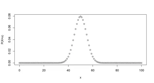 Hence, it is more convenient to define a variable which gives the number of "1"s in the 100 coordinates in every outcome in the sample space . Then, can only take 101 possible values: 0,1,2,...,100, which is much fewer than the number of outcomes in the original sample space.