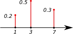 Suppose is a discrete random variable. Partitioning into small disjoint intervals gives In particular, the probability per unit can be interpreted as the density of the probability of over the interval. (The higher the density, the more probability is distributed (or allocated) to that interval).