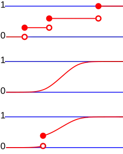 Example. Let . Let . Then, is a cdf of a mixed random variable , with probability to be discrete and probability to be continuous, since it is nonnegative, nondecreasing, right-continuous and .