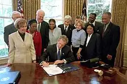 In addition to the numerous law suits, Coleman-Adebayo took her case to legislation and spearheaded a law to protect whistleblowers. The Notification and Federal Employee Antidiscrimination and Retaliation Act (No FEAR Act) was introduced to the United States Congress on January 3, 2001 and signed into law by President George W. Bush on May 15, 2002. [12] The Act is based on Congress's findings that "Federal agencies cannot be run effectively if those agencies practice or tolerate discrimination." [13] The Act requires that Federal agencies provide annual notices to employees about the rights and remedies available under employment discrimination and whistleblower protection laws, train employees at least every two years about those rights and remedies, and submit annual reports to Congress, the Equal Employment Opportunity Commission, the Department of Justice, and the Office of Personnel Management outlining the agency's efforts to eliminate discrimination and promote whistleblower protection. Agencies must also detail complaints brought up against them, post on their public website quarterly statistical data about complaints filed with the agency, and reimburse the Judgment Fund for payments made to employees because of violations of discrimination laws, whistleblower protection laws, and retaliation claims. [14]