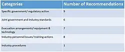 The flowchart above shows the events that occurred directly following the sinking of the ocean ranger. In 1983, the East Coast Petroleum Operators Association published a report on offshore safety which analyzed the current state of affairs. The Royal Commission on the Ocean Ranger Marine Disaster (RCOMD) [1] published parts I and II of their report on the ocean ranger; this report identified the primary causes of the ocean ranger disaster and the primary action items to prevent such an event from being repeated. In 1985 and 1987 respectively a federal government investigation into the Ocean Ranger disaster occurred and a five year update report on regulatory improvements since the Ocean Ranger was published. Parts I and II of the RCOMD report identified three primary groups involved in the Ocean Ranger sinking: government, industry, and researchers.