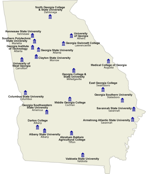The participating campuses are: Abraham Baldwin Agricultural College, Armstrong State University, College of Coastal Georgia, Columbus State University, Dalton State College, East Georgia State College, Georgia Regents University, Georgia State University and the University of North Georgia.