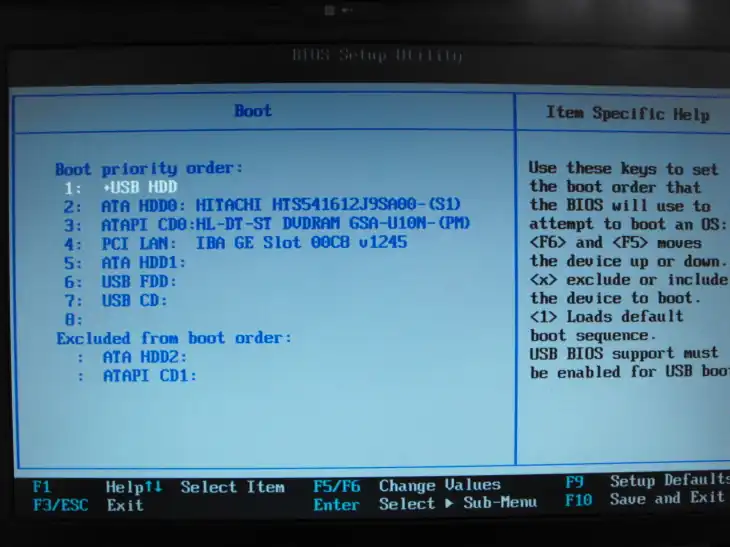 Once you entered the BIOS settings, look for the Boot Sequence page. You should change the sequence so that the USB pen drive is first in the list, the hard disk and CD-ROM/DVD drive later. It differs per computer how this is done, please check the manual of your computer if you are unsure how to change these settings.