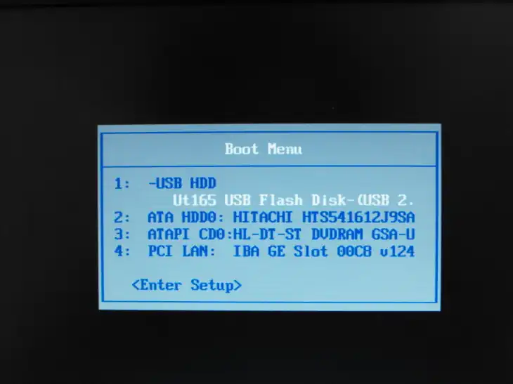 Also, some machines' BIOS offer a quick boot device selection menu like this during startup when pressing F12: