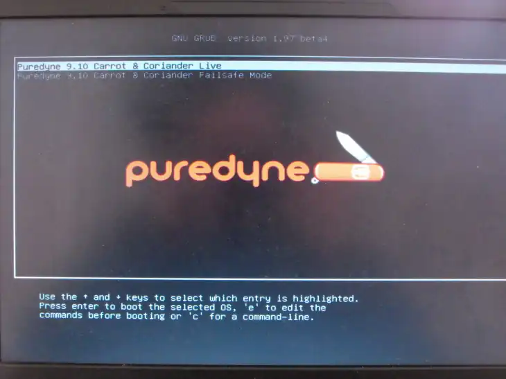 - Once your computer has restarted you should be greeted with a boot menu. Press enter to begin booting Puredyne.