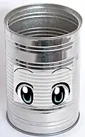 For example the picture shown on the left shows a tin can with a label stick on it resembling a pair of eyes.
