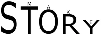 Another example, the rebuses can be formed purely by words but arranged / styling such that it resembled its pun meaning. It shows that the alphabet S is the tallest alphabet (in terms of sizes) inside the word and progresses becoming shorter and shorter until alphabet Y become shortest alphabet. Also we could see the word "make" are literally pressing down the word story to "short" the word.