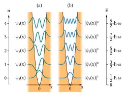 Vibrational energy levels for the quantum harmonic oscillator (where h is Planck's constant, and ω is frequency).