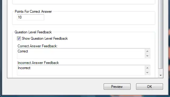 After you have entered your question details you can see a preview of how it will appear onscreen by clicking on the preview button at the bottom of the properties window.