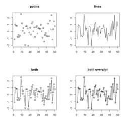 plot(x1, type = "o", main = "both overplot", ylab = "", xlab = "")