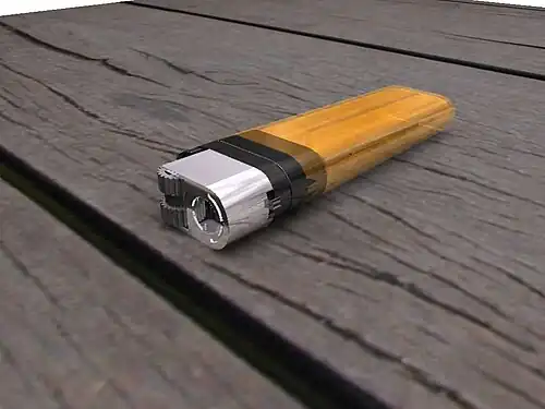 As stated before, to make it make the lighter more realistic, it needs a realistic environment. We already made part of this environment with the HDR-image, but to make it even more convincing, we're going to turn the ground-plane into a realistic looking table. We need an image of wood to apply to the plane. I'll use one from Mayang's Free Texture Library, called "parallel wooden planks".
