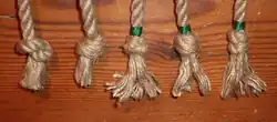 At each end of the rope, you should tie a stopper knot. This not only prevents the rope from getting untwisted but also helps to make shibari style rope extensions. Knots typically used for this purpose are Overhand knot, Thistle knot, Matthew Walker knot and stacked Wall knots.