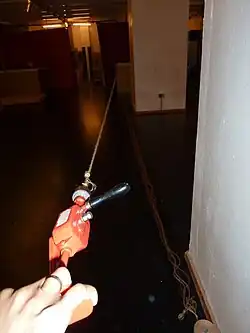 - Move your hooks-device (board) to where you want to drill your strands. It has to be fixed to something heavy (rather an armchair than a kitchen chair).