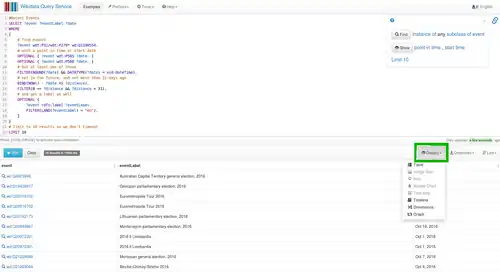 This page helps you to understand the various possibilities to display results on Wikidata Query. The query example page contains many good examples you can try!