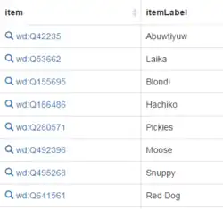 This has now given us a list of all the famous and infamous cats on the Internet – or at least the ones Wikidata knows about. This is great, provided you are a cat person and not, say, a dog person.
