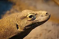 Lizards usually have feet and external ears, while snakes do not share these characteristics. However, because they are defined negatively as excluding snakes, lizards have no unique distinguishing characteristic as a group. Lizards and snakes have a movable quadrate bone, distinguishing them from the sphenodonts, which have more primitive and solid diapsid skulls. Many lizards can detach their tails to escape from predators, an act called autotomy. Lizards have small heads, long bodies and long tails. Since there are so many species of lizard, it's understandable that they come in a large variety of sizes. The largest lizard is the Komodo dragon of the Dutch East Indies, which grows to about 4.5 meters in length and can weight close to 115 kilograms. The smallest lizard is the tiny dwarf gecko, which grows to 1.6 centimeters long and weighs .0042 ounces.