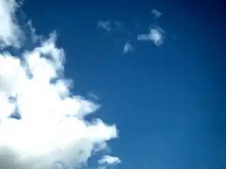 While sun rays pass through the atmosphere, some light waves are scattered by molecules of air and dust and smoke particles. Furthermore, violet and blue are very short light waves, meaning that they can be scattered by very tiny particles, even by individual atoms of Oxygen or Nitrogen and other air molecules. You may wonder why some days the sky may look a little more blue. You are seeing the color blue when you look up at the sky because it is primarily the blue light waves that are being scattered in the sky (the reds and yellows continue towards the earth). When there is an enormous amount of smoke and dust particles in the air the longer light waves (which are red, yellow, and orange) are also scattered and the sky takes on a gray or white color (and it is darker because so many of the light rays have scattered). After a thunderstorm the sky may look especially blue again because the rain has washed away the smoke and dust particles out of the atmosphere.