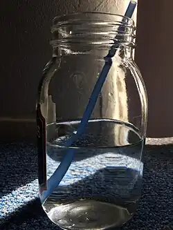 - Look at the straw from the side of the glass and focus on the point where the straw enters the water. What is strange about what you see?