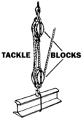 The Block and Tackle Is a system of two or more pulleys with a rope or cable threaded between them, usually used to lift or pull heavy loads. The more rope involved, the greater the mechanical advantage. The pulleys are assembled together to form blocks and the blocks are paired so that one is fixed and one moves with the load. The rope is threaded, or rove, through the pulleys to provide mechanical advantage that amplifies the force applied to the rope.