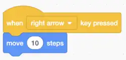 However, a better script for the arrow keys would be to use "change x by 10" for the right arrow, "change x by -10" for the left arrow, etc.