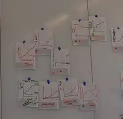 An array of items to vote on with dots, for example, a set of behavior over time graphs