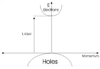 In a direct band-gap material such as GaAs, only a change in energy is required, as seen in figure 5. As such GaAs is very efficient at producing light, although in the infrared spectrum.