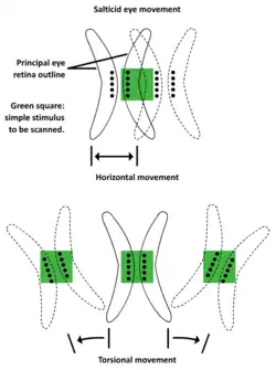 Spiders making sophisticated use of visual cues move their principal eyes´ retinae either spontaneously, in “saccades” fixating the fovea on a moving visual target (“tracking”), or by “scanning”, which serves presumably for pattern recognition. It seems today, that spiders scan a scene sequentially by moving the eye-tube in complex patterns, allowing it to process high amounts of visual information despite their very limited brain capacities.