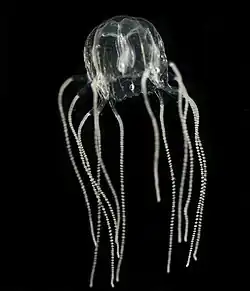 Figure 1: Tripedalia cystophora, a box jellyfish from the Caribbean Sea.