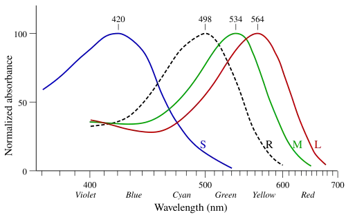 {{cite journal}}: CS1 maint: multiple names: authors list (link) - ↑ Kaiser, Peter K and Boynton, Robert M (1985). "Role of the blue mechanism in wavelength discrimination". Vision research. 125 (4): 523–529.