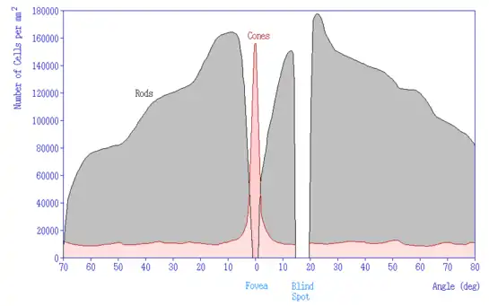 {{cite journal}}: CS1 maint: multiple names: authors list (link) - ↑ Nerger, Janice L and Cicerone, Carol M (1992). "The ratio of L cones to M cones in the human parafoveal retina". Vision research. 32 (5): 879–888.